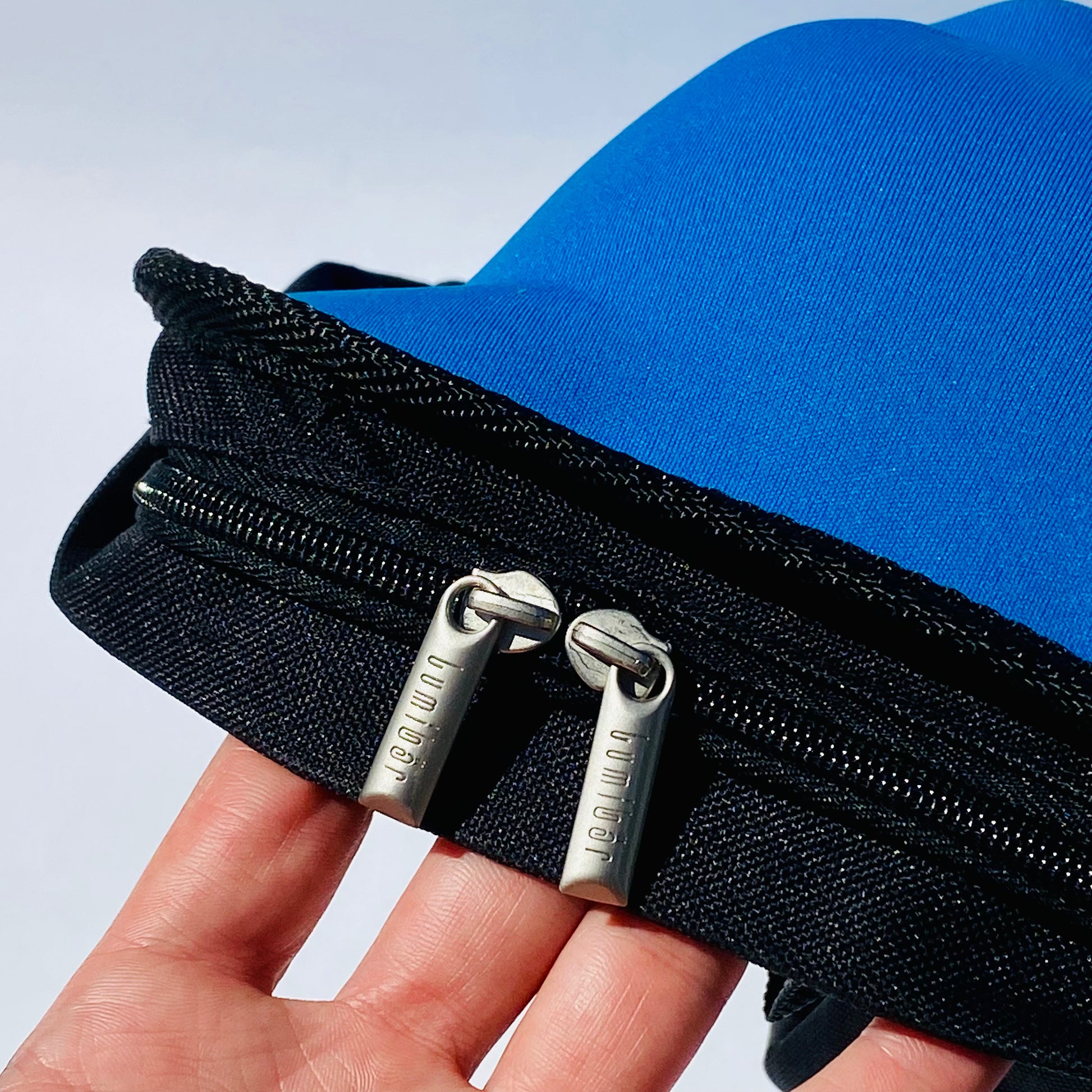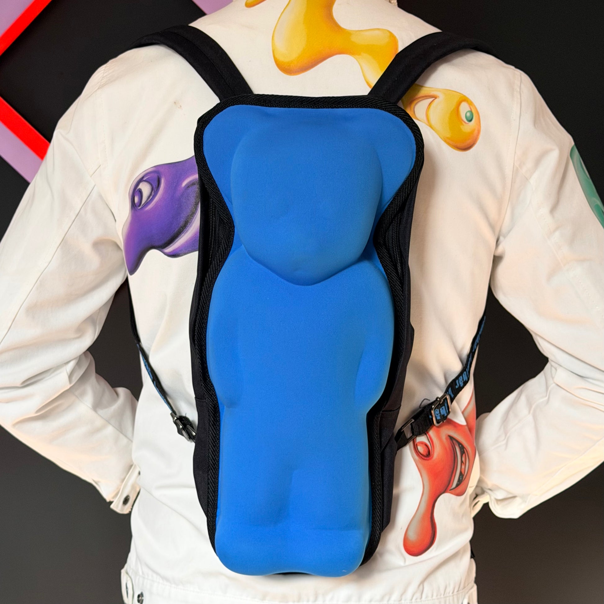 Designed originally as a lamp by Heinz Klein and Georg Leidig for Elmar Floetotto available here as a backpack in bear shaped sculpted thermo-insulated blue neoprene. Double zip closure with adjustable straps and bear shaped flip phone zipper pocket. In brand new condition with original plastic packaging. Big enough for a bottle of wine or as a carry-on. Cute as shit. Multiple available.