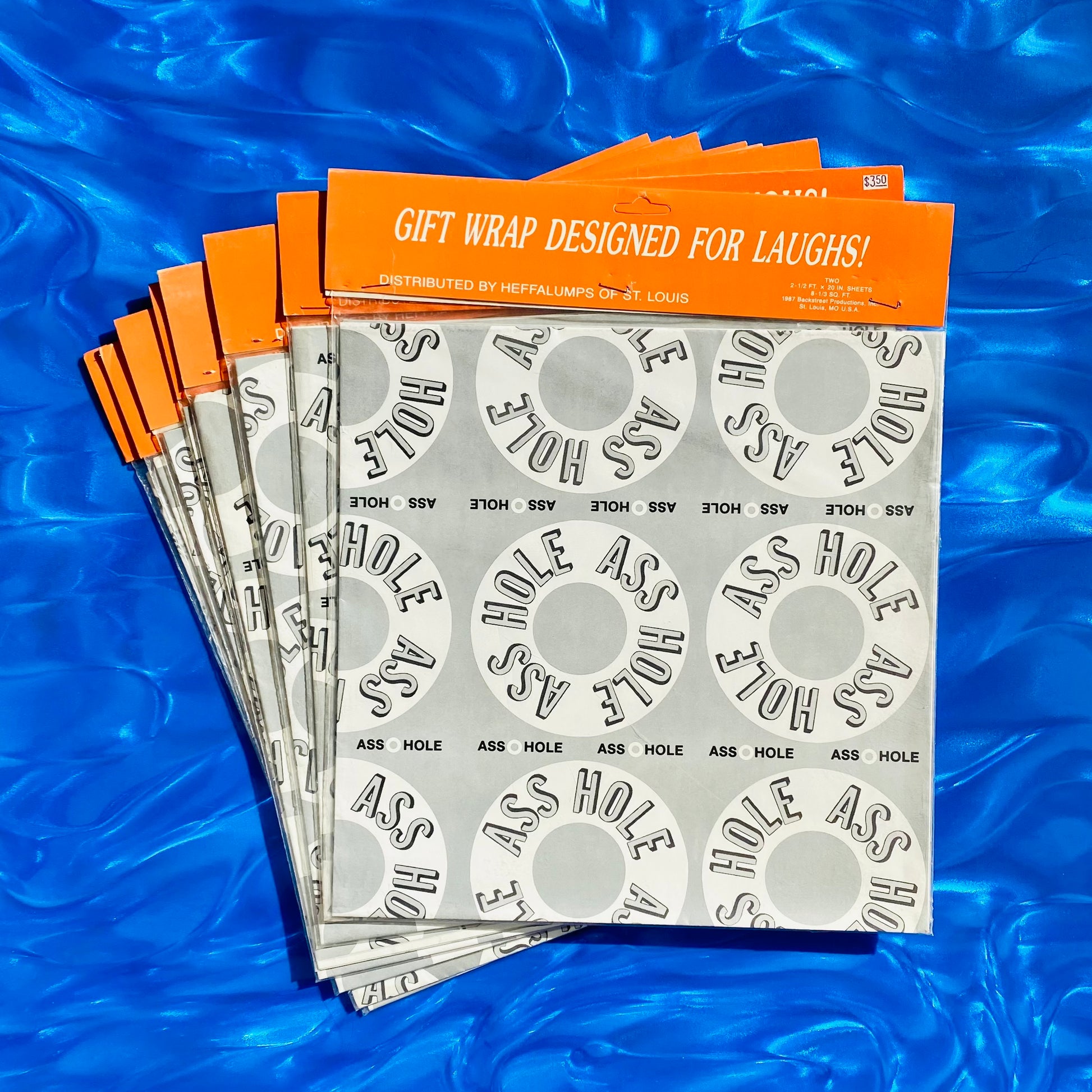 Deadstock novelty rude gift-wrap by Backstreet Productions 1987.