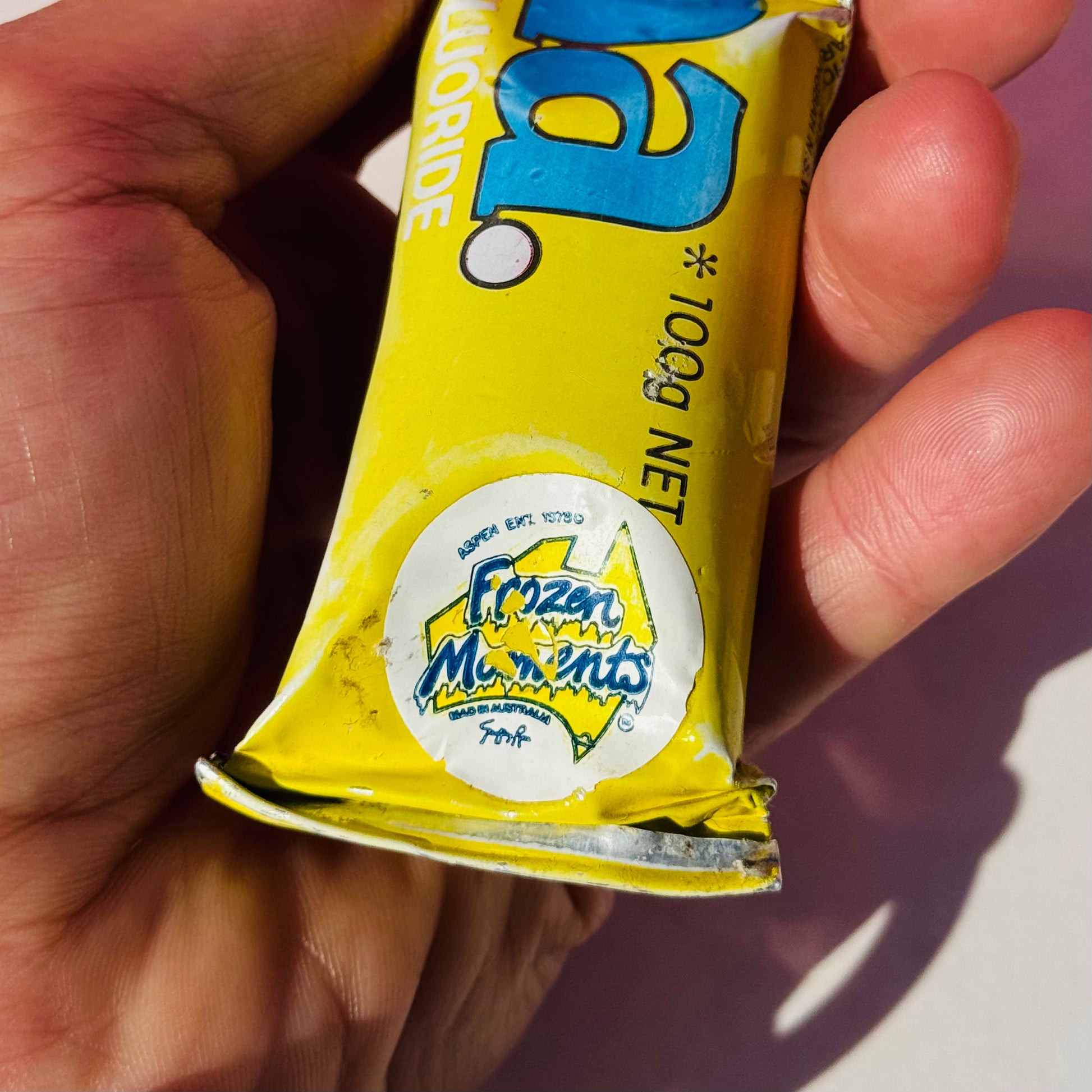 Scarce vintage Frozen Moments toothpaste by Geoffrey Rose made in Australia 1980.