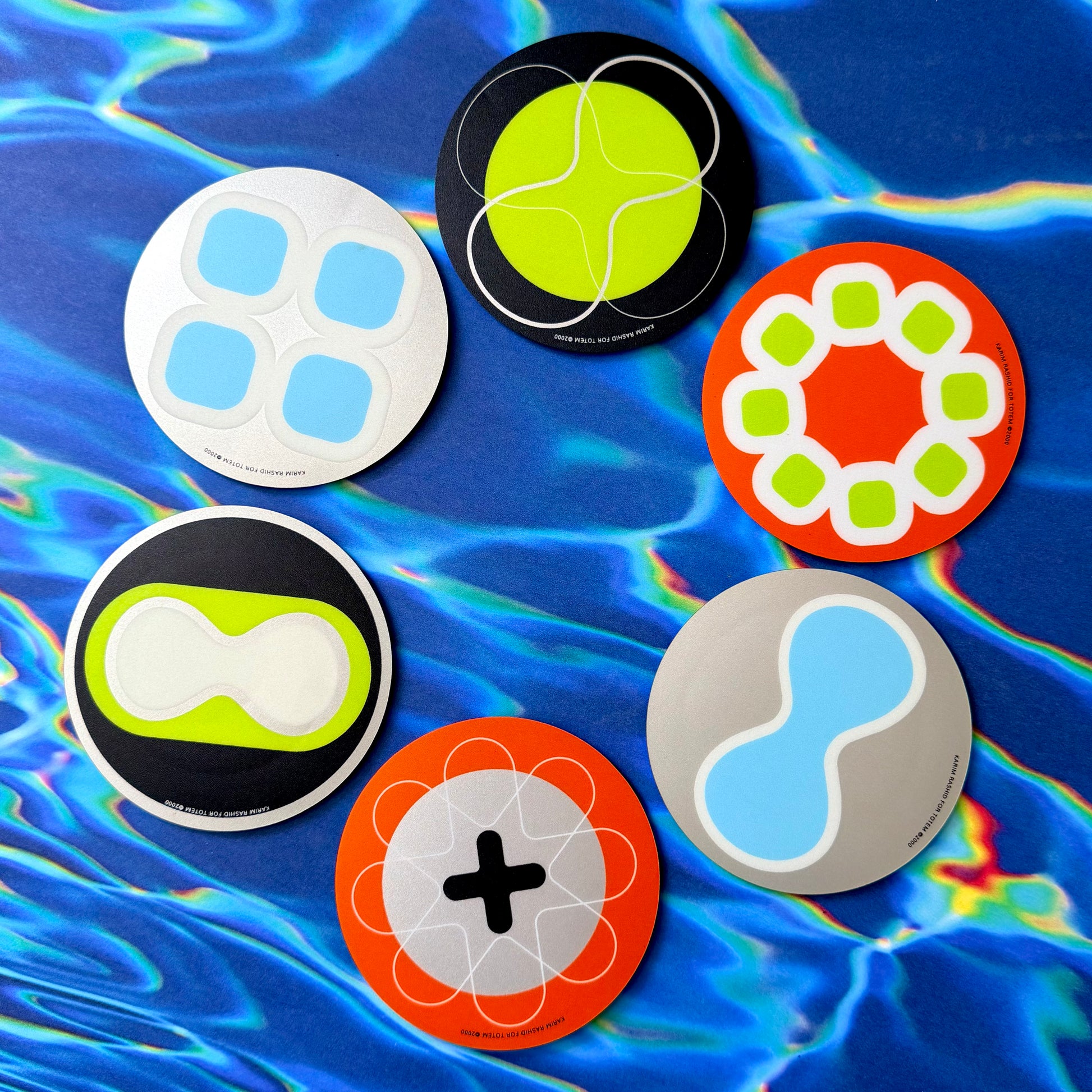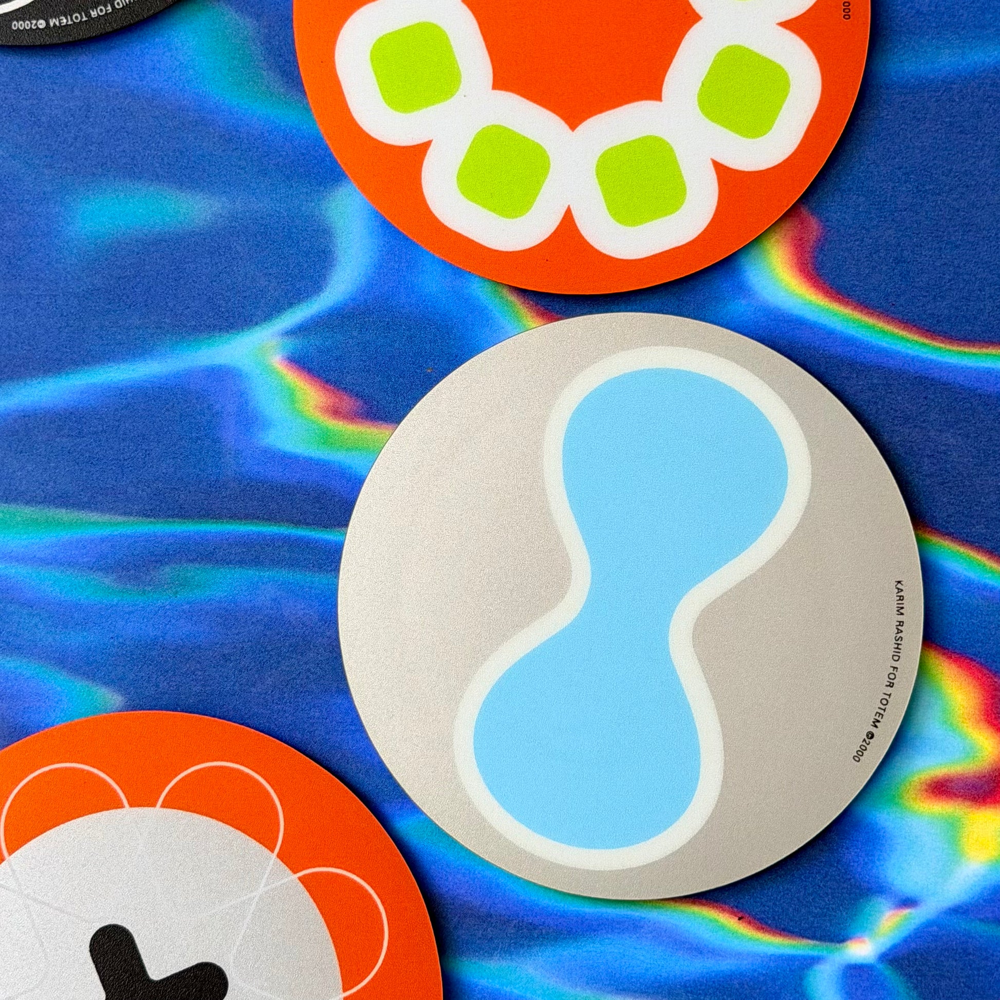 Vintage Karim Rashid mega graphic metallic coaster set by Totem 2000.